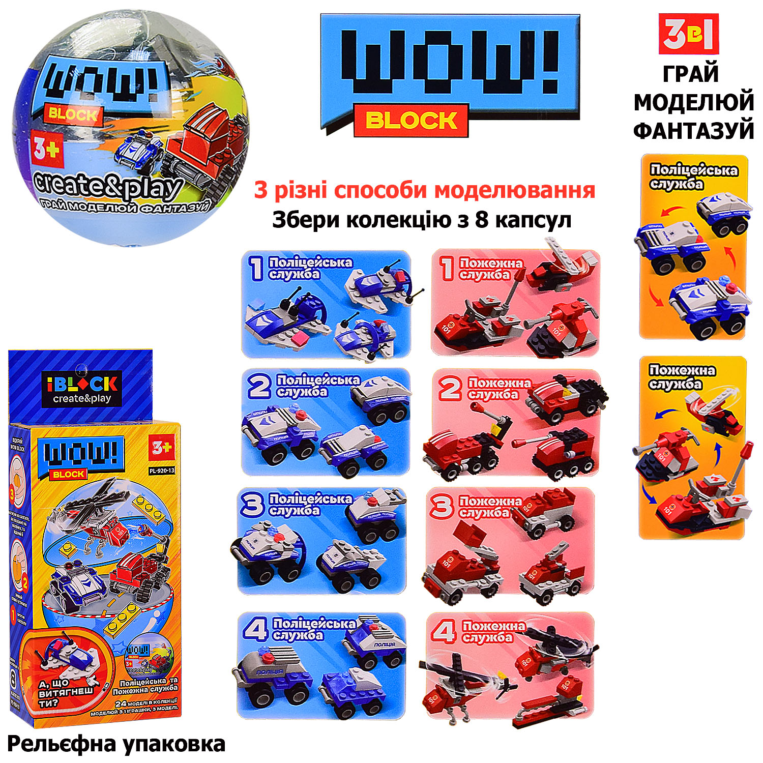 Конструктор IBLOCK в шаре 6,5*6,3см: Полиция, Пожарная, ЦЕНА ЗА УП. 8ШТ разных моделей, инструкция на укр яз, бокс 14*7*33 см (60уп по 8шт/2)