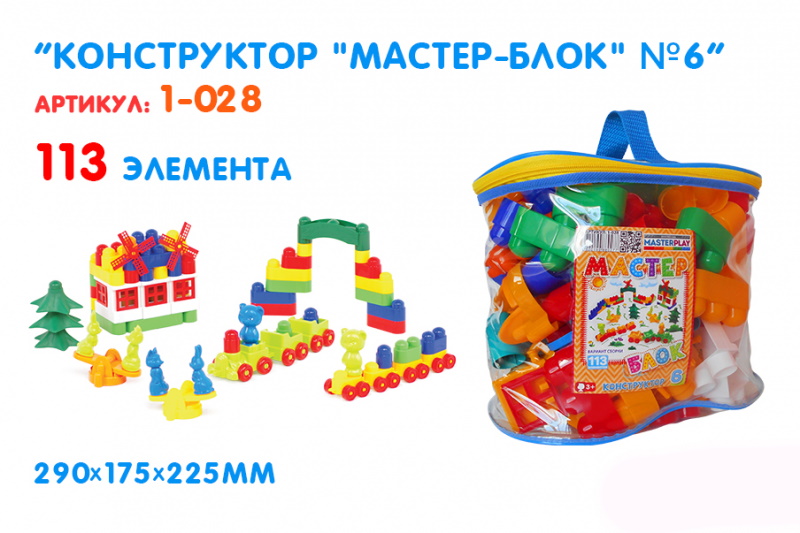 Конструктор "Мастер Блок" №6, 113 дет., 29*17,5*22,5см, ТМ Колорпласт, Украина (8шт)