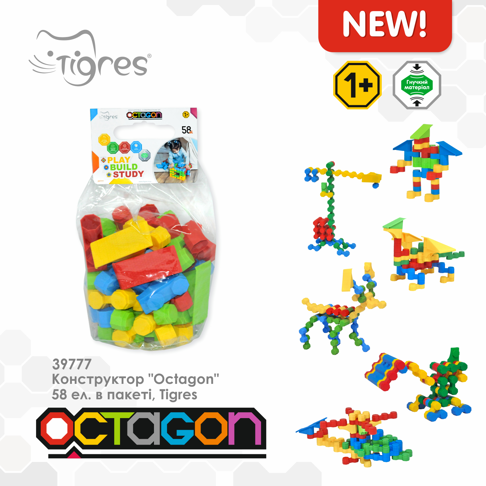 Конструктор "Octagon" 58 элементов, в пак. 33*16*16см, ТМ Wader