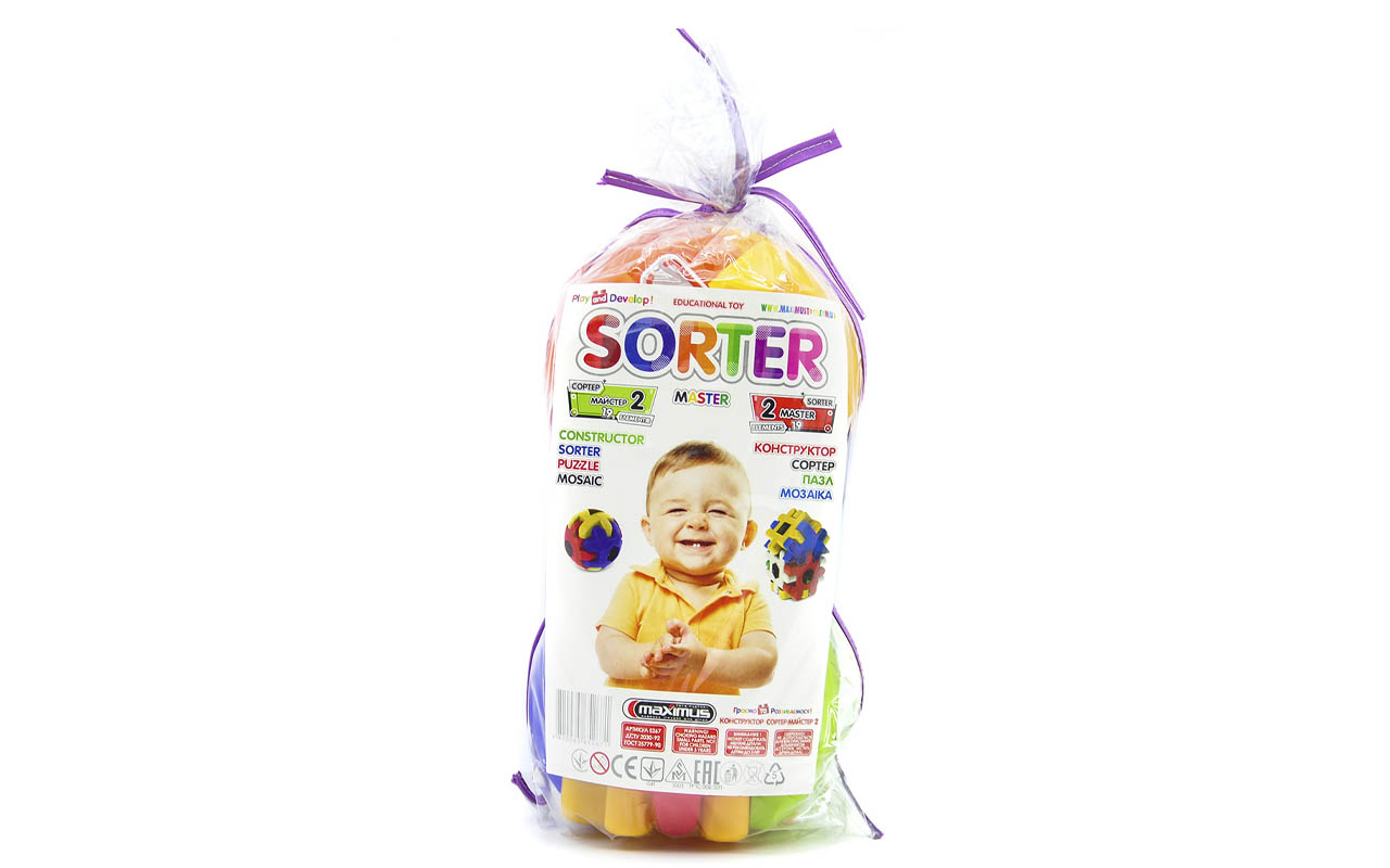 Конструктор - 3Д пазл "Сортер Майстер 1" 19 элементов розвив. цвета, геом.фиг, логика, в пак. 30*19см, ТМ MAXIMUS, Украина