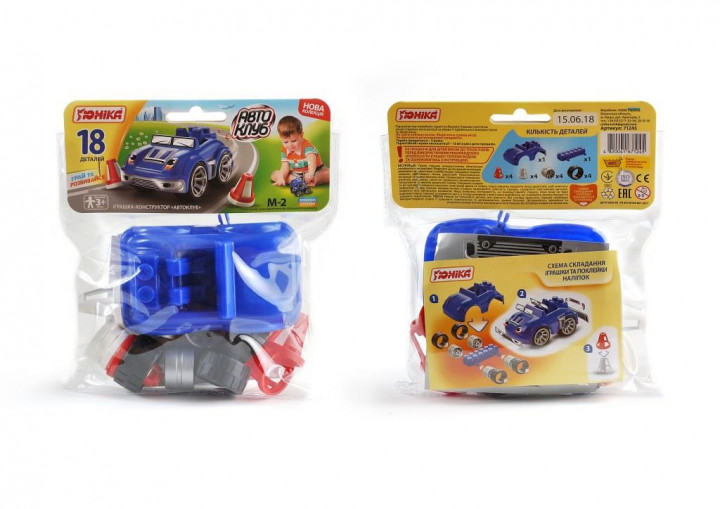 Конструктор "Автоклуб" М-1, Спорткар, 18 дет., в пак., 17*28*5см, ТМ Юника, Украина (14шт)