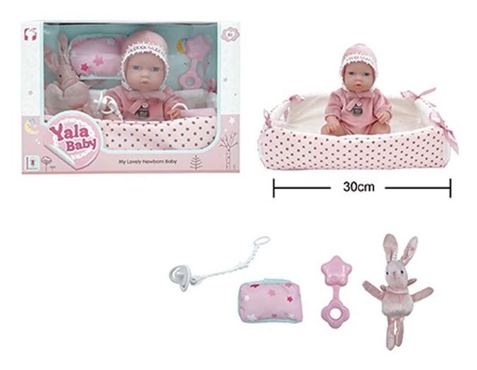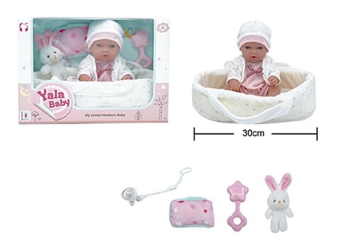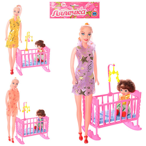 Кукла 2шт, 27см и 10см, с кроваткой, 3 вида, пак. 18*32*9см (144шт)