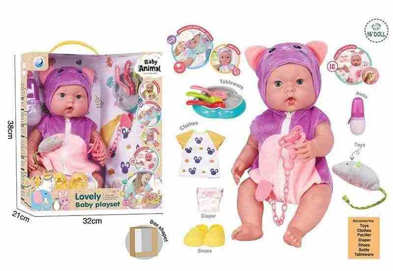 Кукла 40см, пьет-писает, сенсорный, музыка, звук, реагирует на соску, горшок, бутылочка, подгузник, посуда, на батар., в кор. 26,5*38*15,5см (12шт)