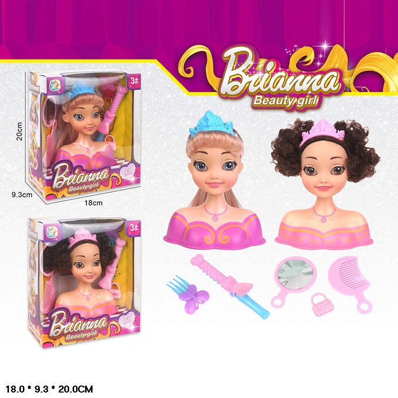 Кукла голова для причесок 20см, подставка с ящичком, украшения (заколки, серьги), плойка, расческа, 2 вида, в кор. 25,5*25,5*12,5см (18шт)