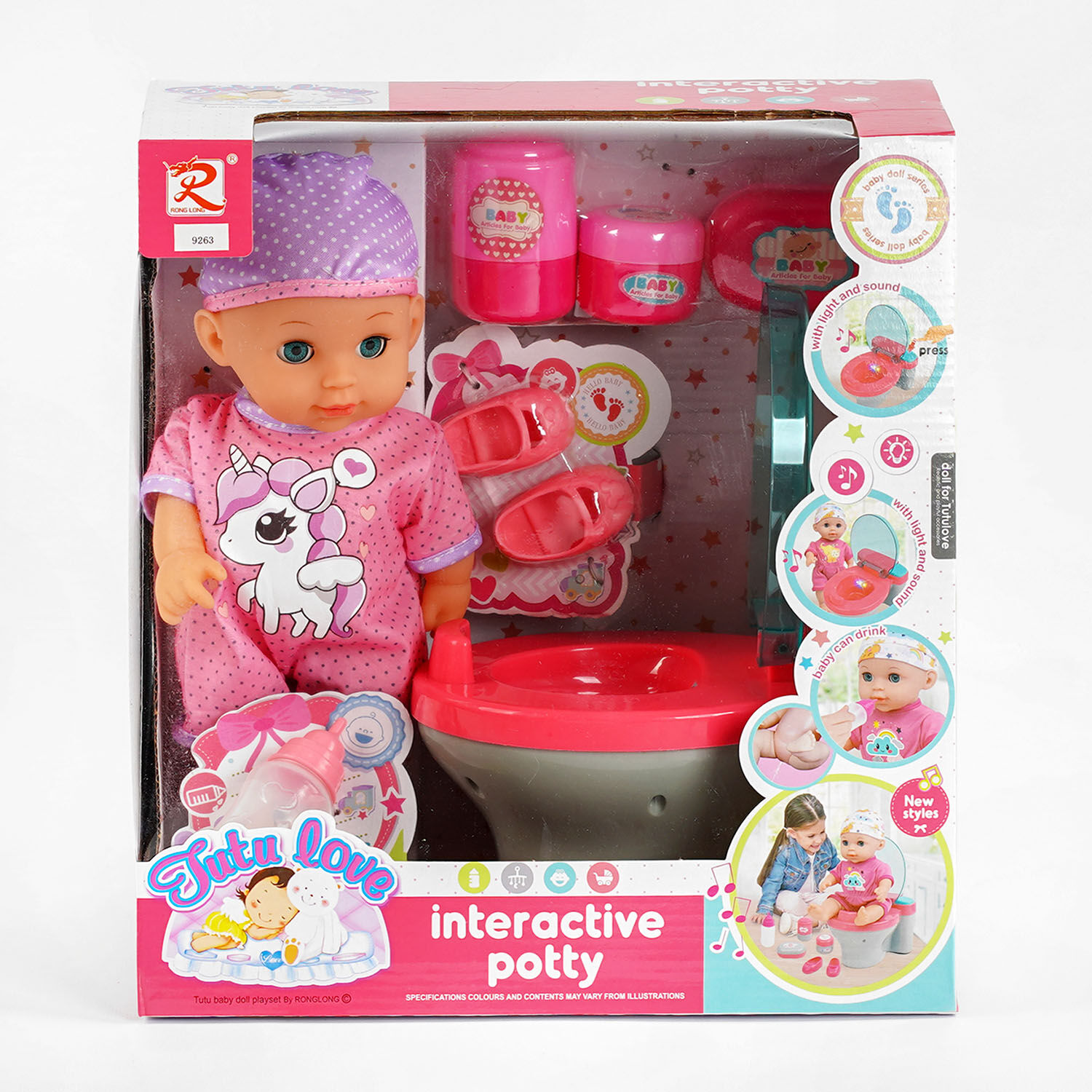 Пупс, функциональный горшок, звук, свет, музыкальный чип, закрывает глаза, пьет, ходит на горшок, аксессуары, у кор. 32*31*21см (12шт)