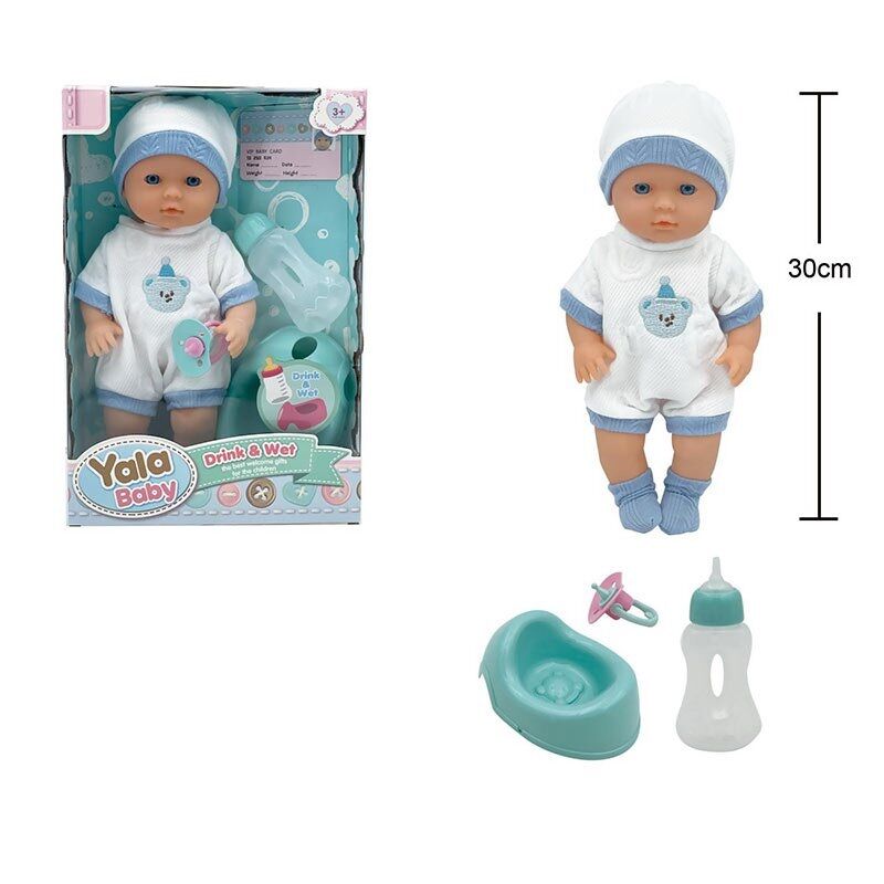 Пупс 30см, пьет из бутылочки, ходит на горшок, съемную одежда, аксессуары, в кор. 32*22*10см (36шт)