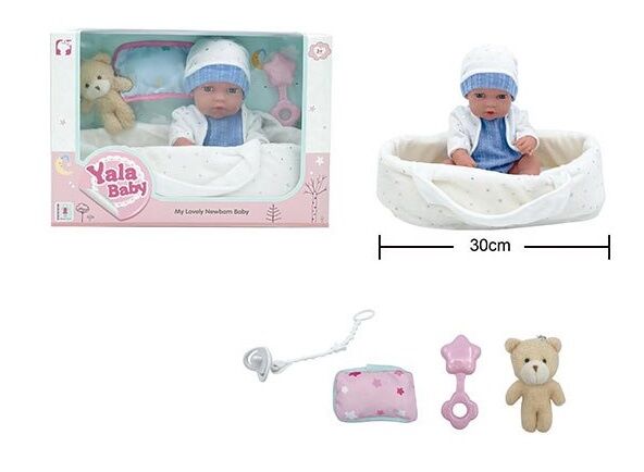 Пупс 33см, голосовой чип, имитация стеклянных глаз, пустышка, аксессуары, в кор. 38*22*10см (24шт/2)