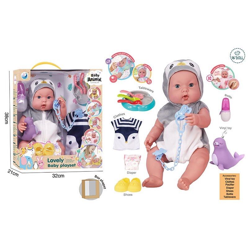 Пупс 32см, виниловая, съемная одежда, подвижные конечности, аксессуары, стеклянные глаза, музыкальный чип, в кор. 32*22*15см (24шт/2)