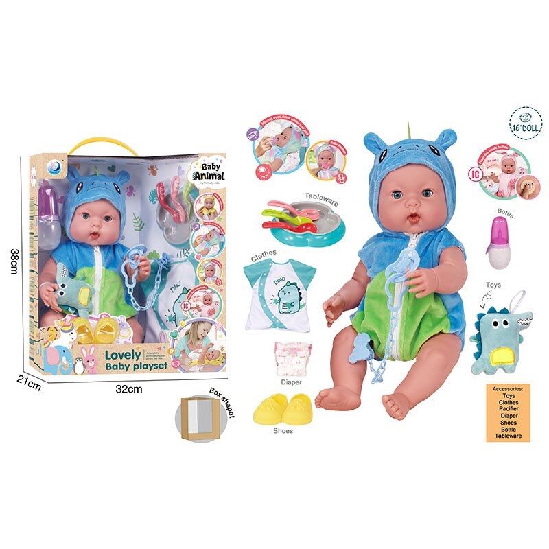 Пупс 39см, музыкальный чип, закрывает глаза, съемная одежда, пустышка, обувь, подгузник, ходит в туалет, бутылочка, тарелочка, ложечки, в кор. 38*31*21см (12шт/2)