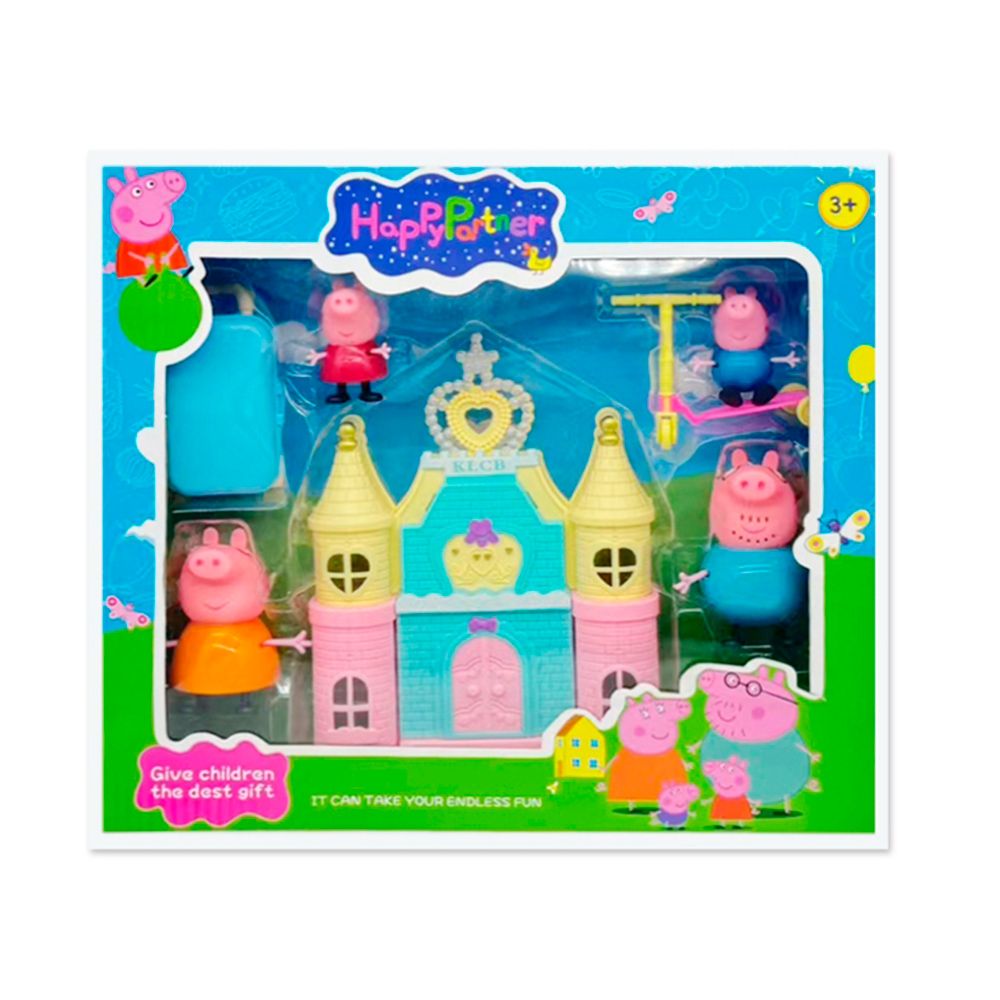 Замок PP, 14*18*3см, набор фигурок 4шт/семья (5см, 8,5см), чемодан, самокат, в кор. 31*28*6см (24шт)