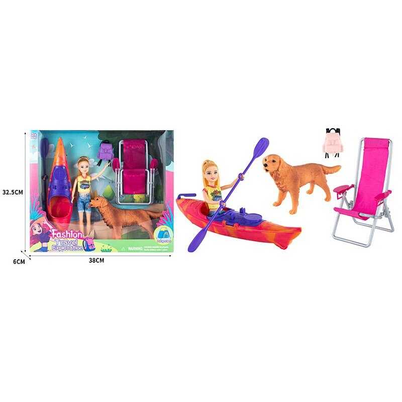 Кукла 23см с аксессуарами кресло-шезлонг, байдарка, собака, рюкзак, кор. 38*33*6см (36шт/2)