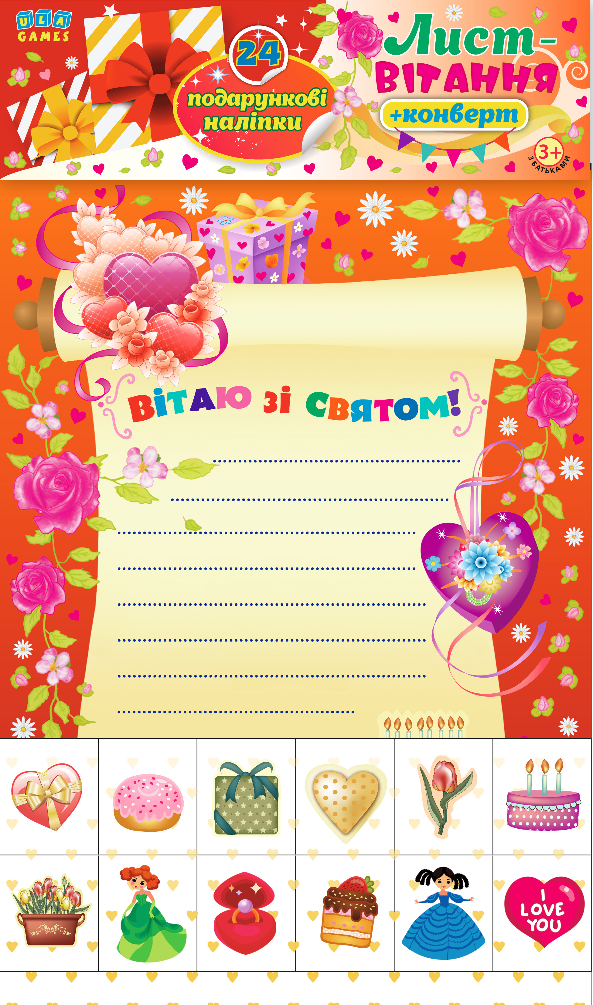 Книга Лист вітання. Оранжевий, 24 наклейки + конверт, 24*17см, Украина, ТМ УЛА
