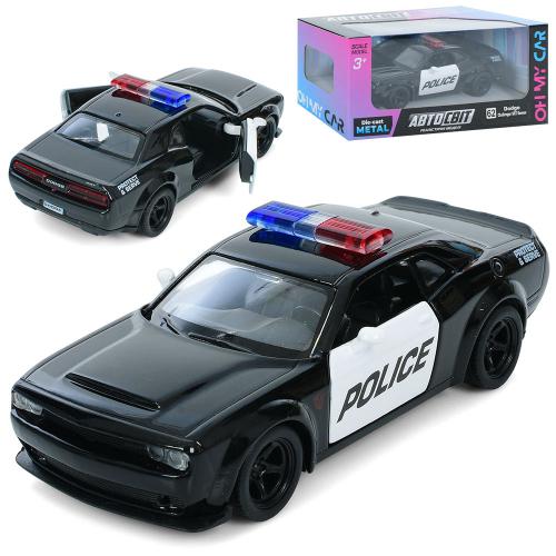 Машина АвтоМир, Dodge Challenger SRT 2018, металл, инерция, полиция, 12см, открываются двери, резиновые колеса, в кор. 15,5*7*7см (48шт)