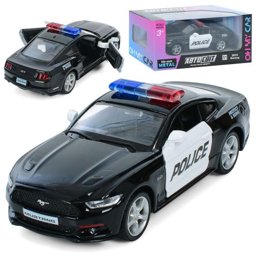 Металлическая машина АвтоМир, Ford Mustang, инерция, полиция, 12см, открываются двери, резиновые колеса, в кор. 15,5*7*7см (48шт)