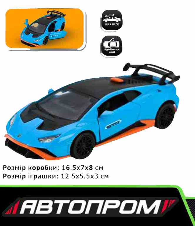 Машина мет. АВТОПРОМ 1:32 "Lamborghini STO", бат, світ., звук, відкр.двері, в кор. 18*9*8см (48шт/2)