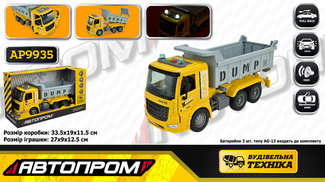 Машина АВТОПРОМ бат. "Стройтехника", свет, звук, в кор. 33,5*19*11,5см (24шт/2)