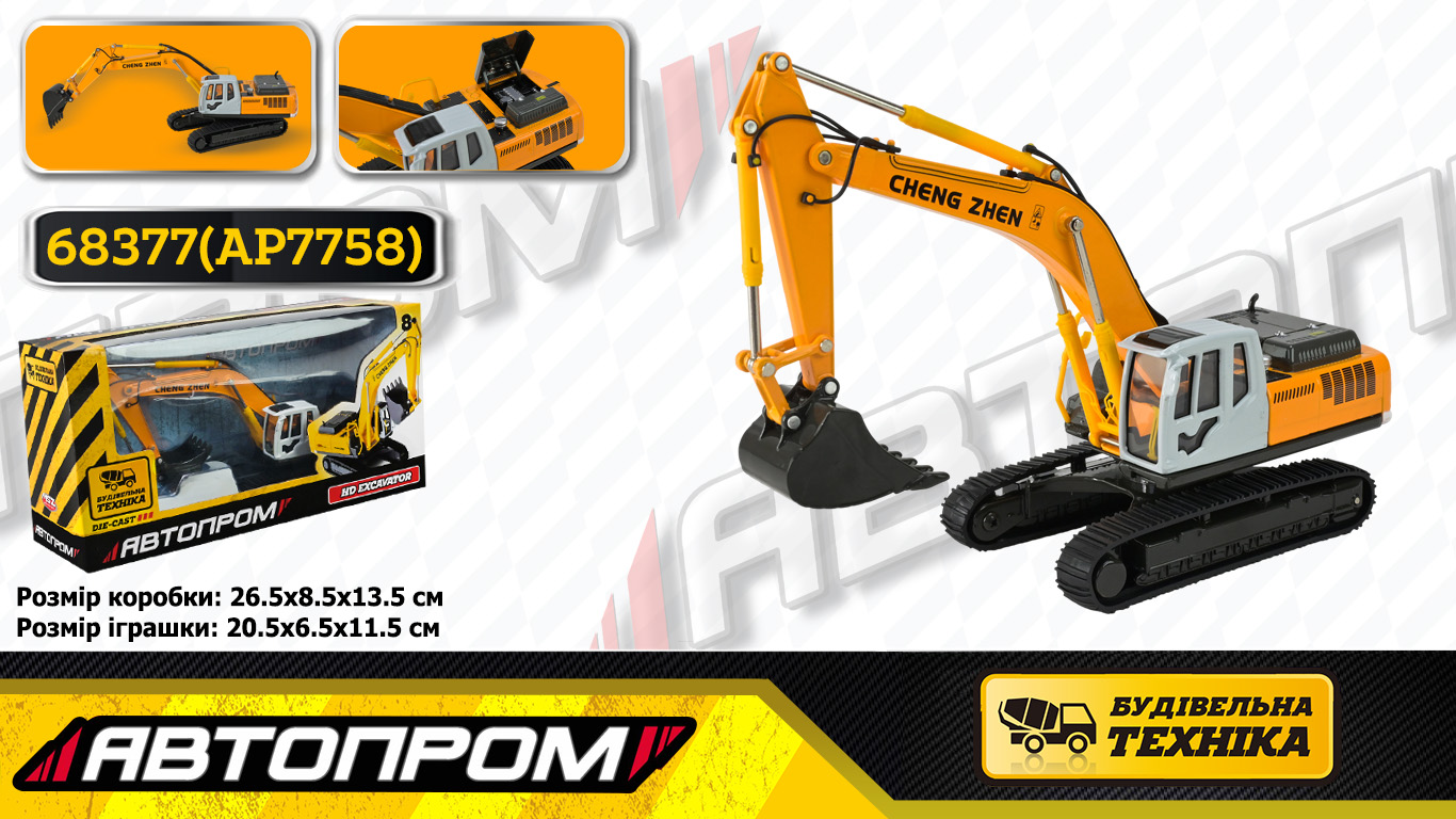 Стройтехника мет. АВТОПРОМ, 1:50 Экскаватор, подвижные детали, в кор. 26,5*13,5*8,5см (24шт/2)