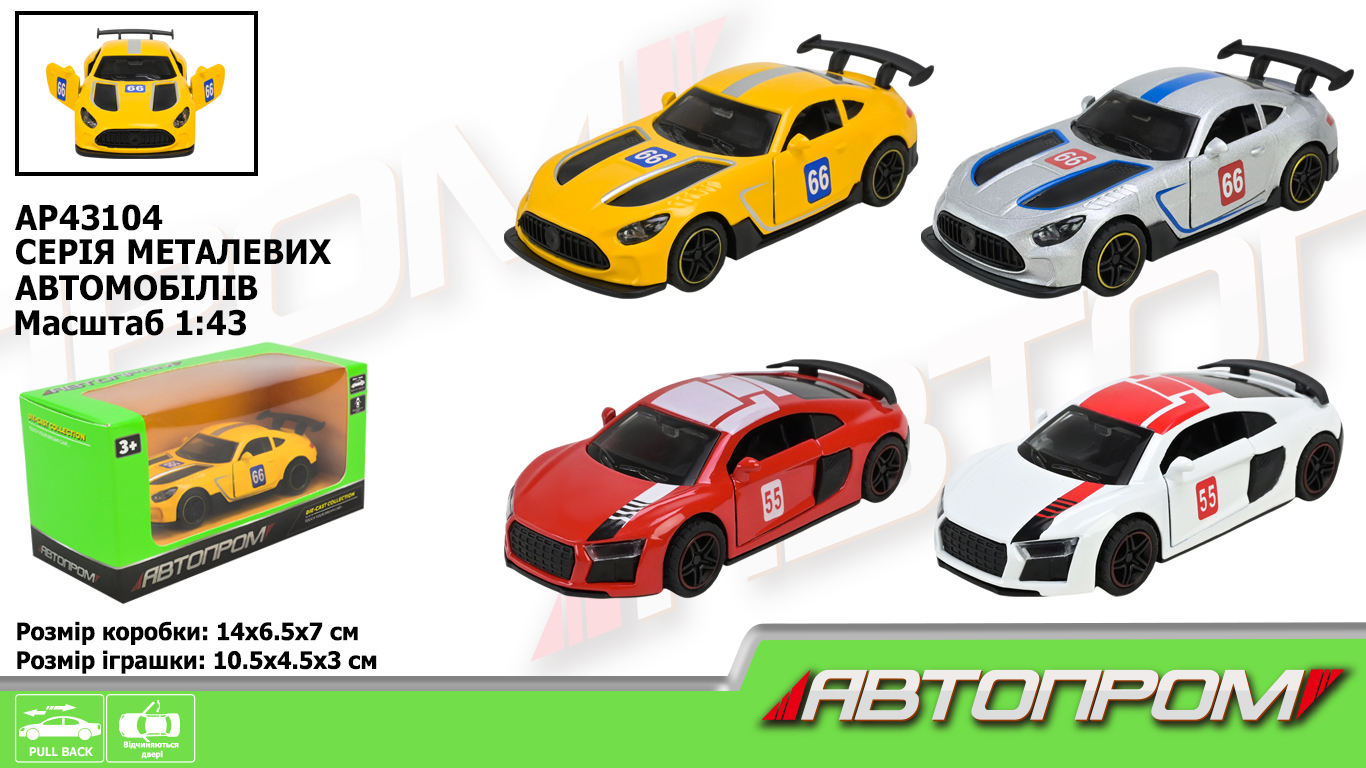Машина мет. АВТОПРОМ 1:43, 4 цвета откр.дверь, в кор. 14*7*6,5см (96шт/2)