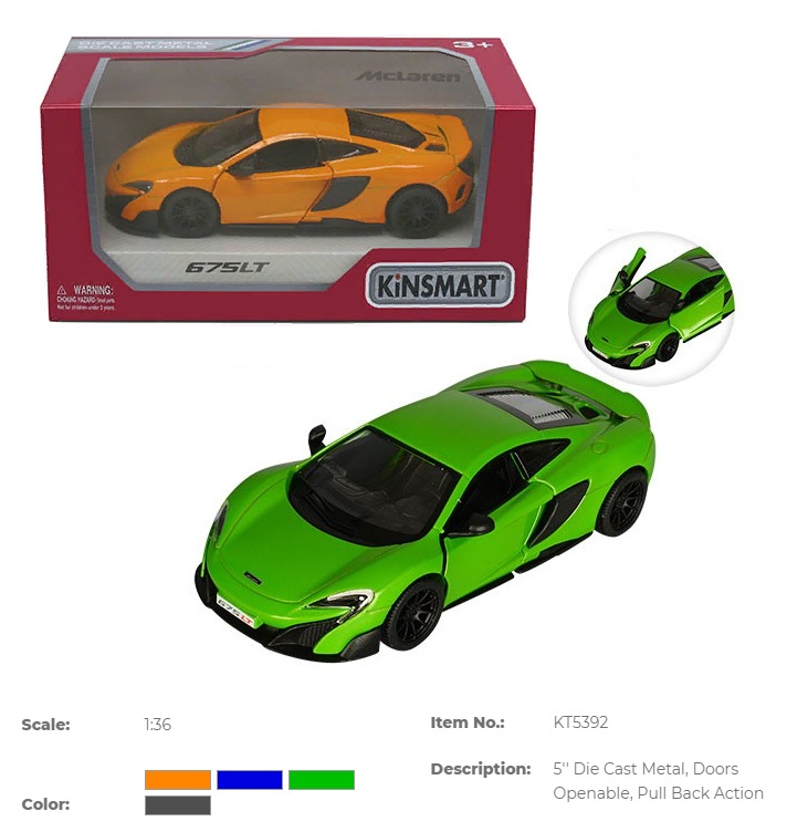 Машина метал. "Kinsmart" "McLaren 675LT (2017)", 12см, инерц., открыв. двери, 4 цвета, в кор. 16*7*8см (24шт)