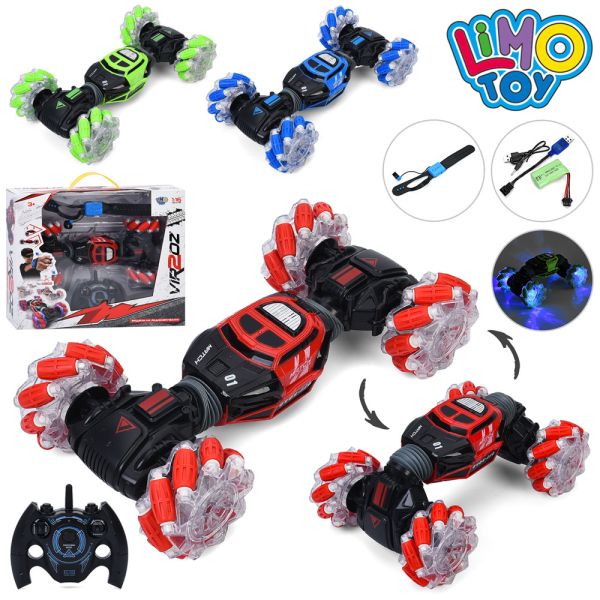 Машина 28см, р/у, 2.4G, аккум, USB зар, управление жестами, изменяющая форму, резинка колеса, свет, 3 цвета, в кор. 27*15*12,5см (8шт)