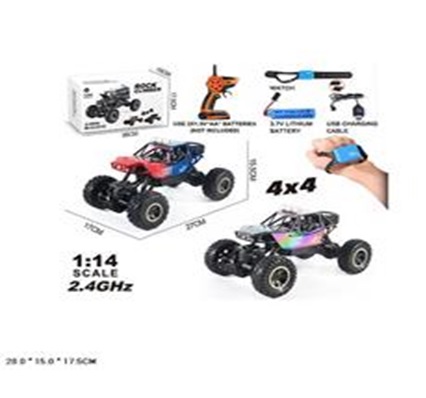 Машина р/у 2,4G, аккумулятор, 28см, свет, корпус не бьется, резиновые колеса, доп.колеса, амортизатор, 4х4, USBзарядное, 2цвета, в кор. 30,5*24,5*15см (4шт)