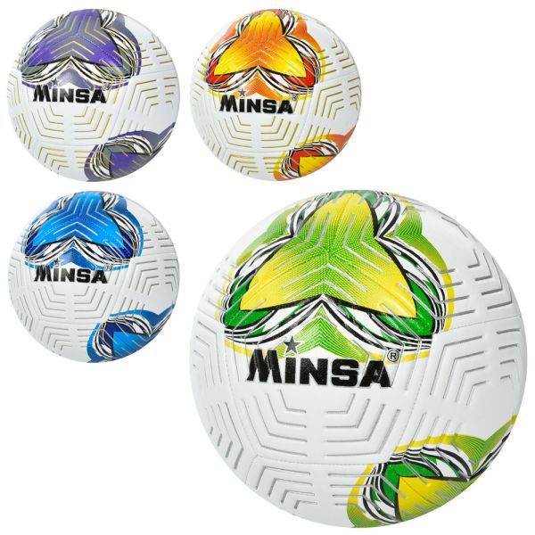 Мяч футбольный, размер 4, Футзал, ПУ1,4мм, 32 панели, ручная работа, 420-440 г, 3 цвета, в пак. (30шт)