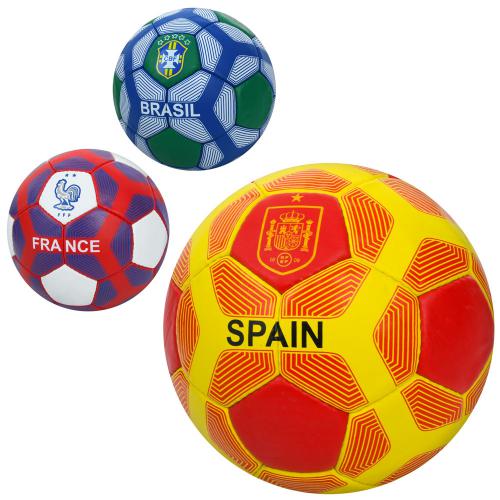 Мяч футбольный размер 5, ПВХ, 1,8мм, 340-360г, 3 вида (страны), пак. (30шт)