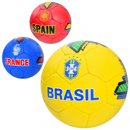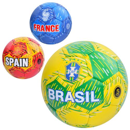 Мяч футбольный, размер 5, ПУ 1,4мм, ручная работа, 32 панели, 400*420г, 3 вида (страны) (30шт)