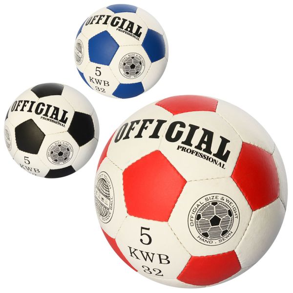 Мяч футбольный OFFICIAL, размер 5, ПУ, 1,4мм, 32 панели, ручная работа, 380-390г, 3 цвета, пак. (30шт)