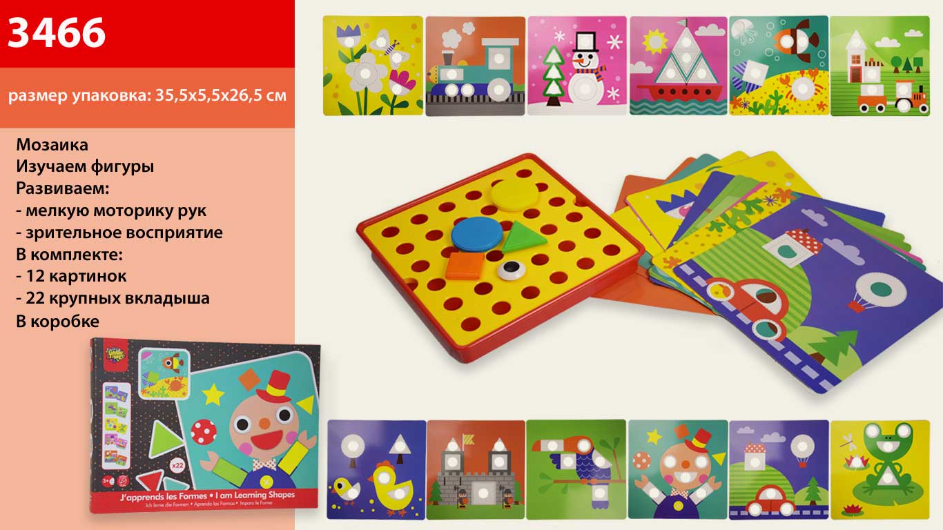 Мозаика для самых маленьких, геометрические фигуры, 12 картинок, 22 вкладыша, в кор. 36*27*6см (48шт/2)