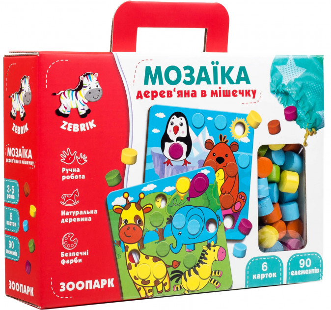 Мозаика деревянная "Зоопарк", в кор. 24*6*18см, ТМ Vladi Toys, Украина (6шт)