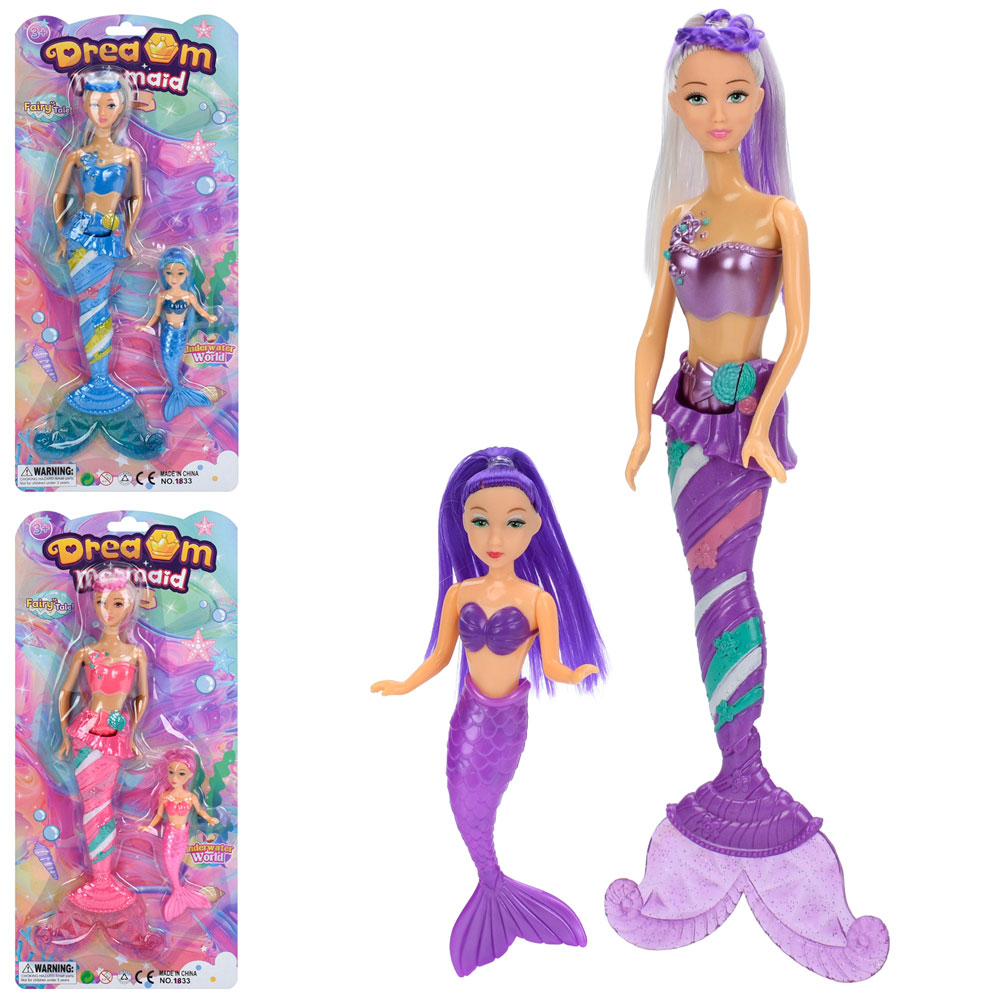 Кукла русалка, 34,5см, с дочкой 15см, 3 цвета, лист 19,5*43*5см (72шт)