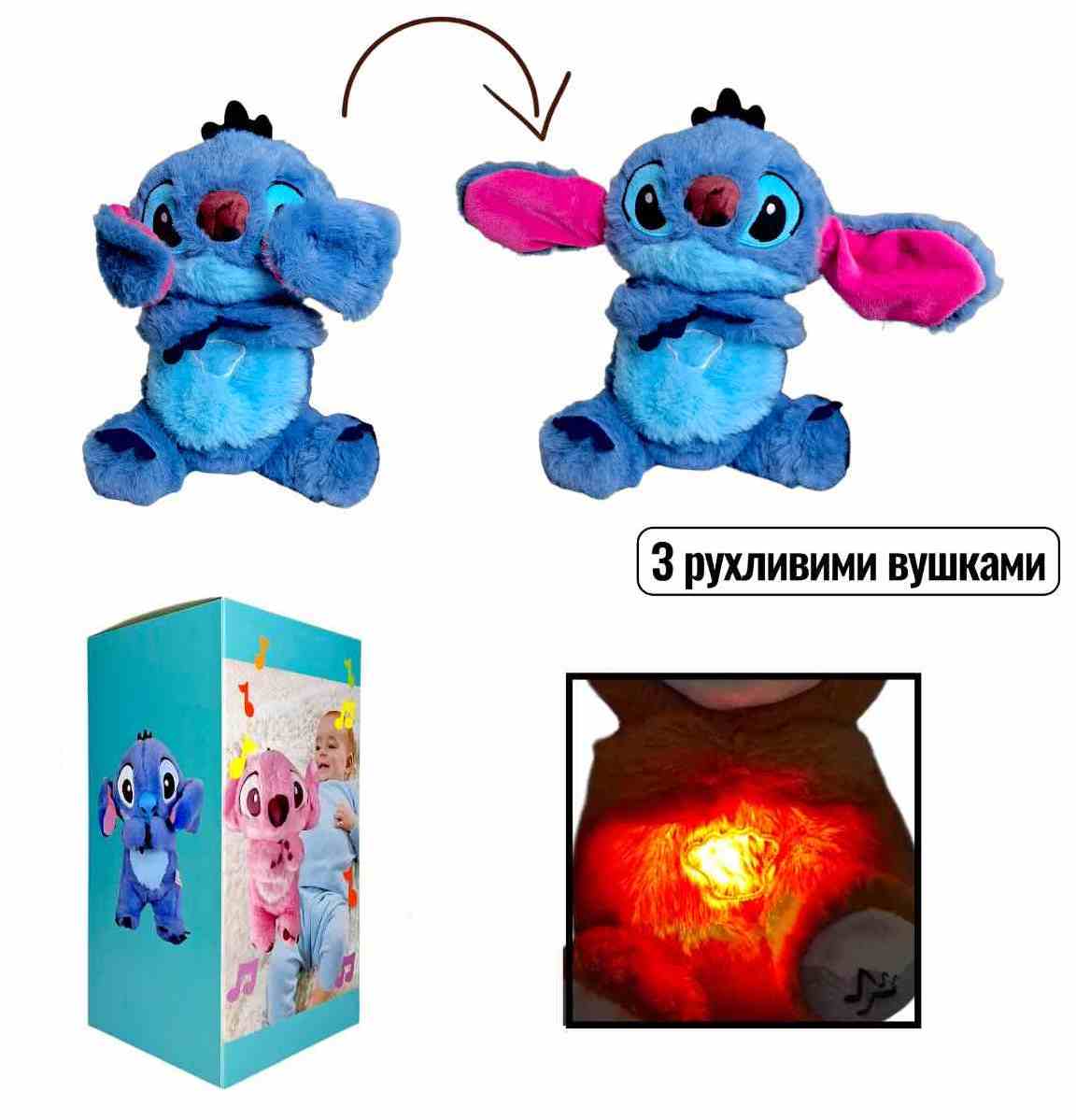 Мягкая игрушка Дышащий Стич, для сладких снов 28см на батарейках