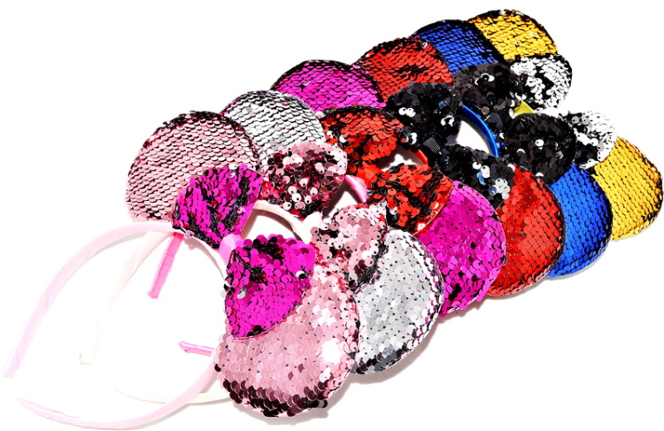 Ободок для волос "Микки" ушки в пайетке, ЦЕНА ЗА УП. 6ШТ, в пак. 21*21см (6 шт)