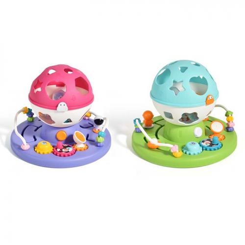 Игра шар на подставке 19*25см, музыка, свет, шестерни, сортер, фигуры 4шт (погремушка), лабиринт, 2 цвета, на бат., в кор. 25,5*25,5*11,5см (24шт)