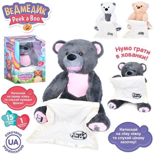 Музыкальное животное Медведь, 25*21*18см, звук+музыка, укр., сказка, игра в прятки, подвижный, 3 вида, на батар., в кор. 19*27,5*19см (22шт)
