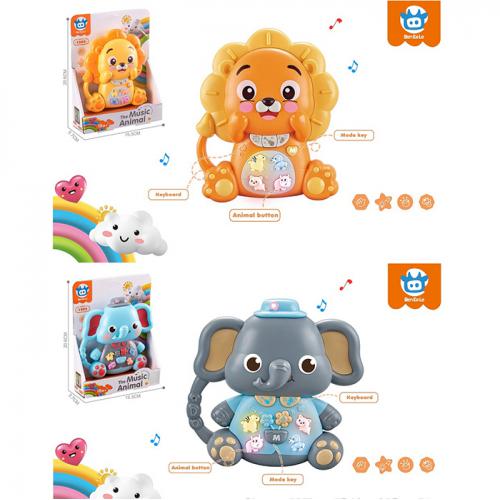 Пианино 15см, музыка, звуки животных, свет, 3 режима, 2 режима громкости, 2 вида (слон, лев)/по 2цвета, на батар., в кор. 15,5*21*6см (60шт)