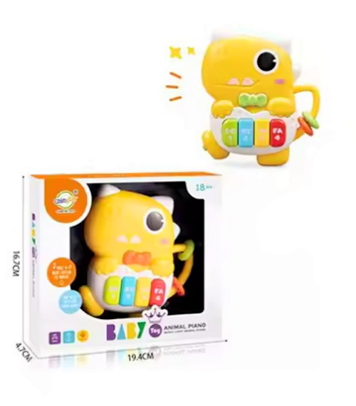 Пианино животное/динозавр, 15см, музыка, звук, желтый, звуки животных, свет, 3 вида по 2 цвета, на батар., в кор. 19,5*17*5см (60шт)