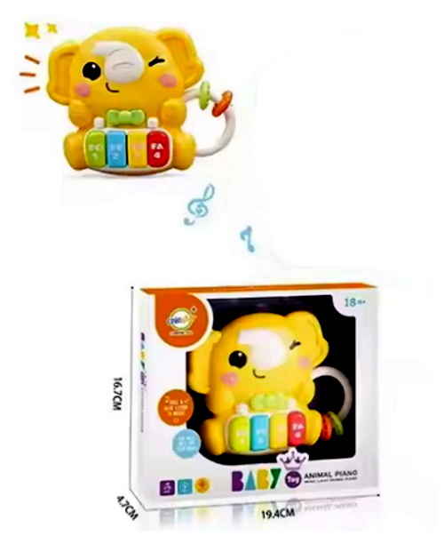 Пианино животное/слон, 15см, музыка, звук, жолтый, звуки животных, свет, 3 вида по 2 цвета, на батар., в кор. 19,5*17*5см (60шт)