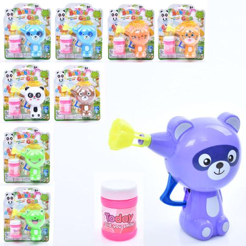 Мыльные пузыри пистолет-животное 12см, запаска 6см, микс видов, на планш. 17*20,5*5см (90шт)
