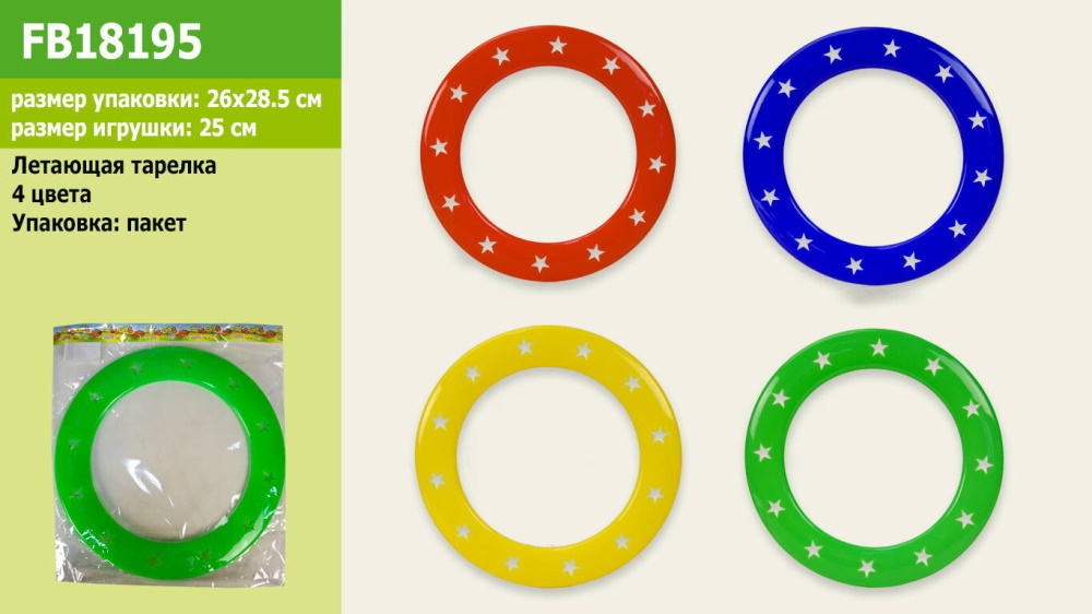 Летающая тарелка 25см, 4 цвета, пак. 28,5*26см (800шт/2)