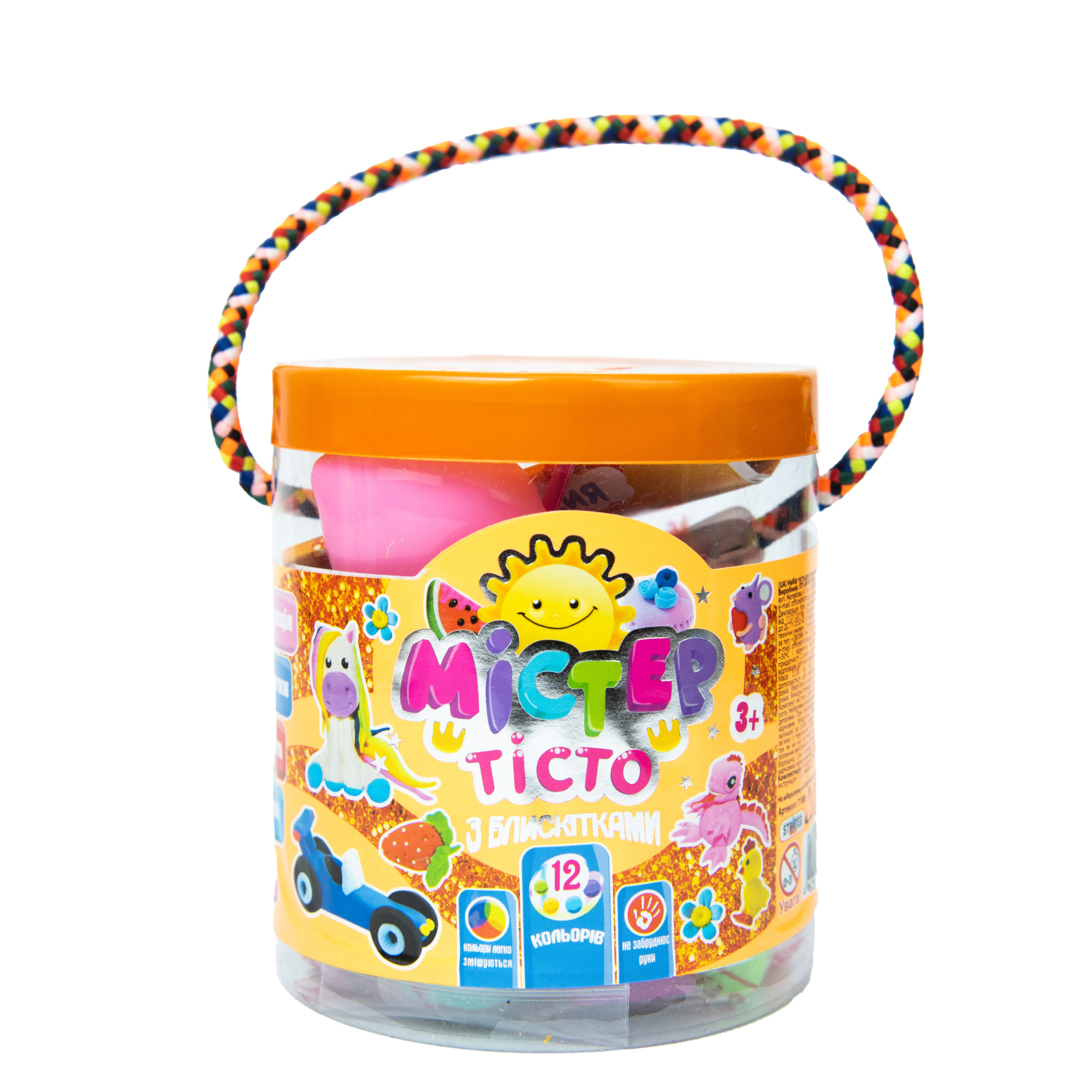 Набор теста для лепки (укр) "Містер тісто" 12 цветов, с блестками, блистер 10*9см, ТМ Стратег, Украина