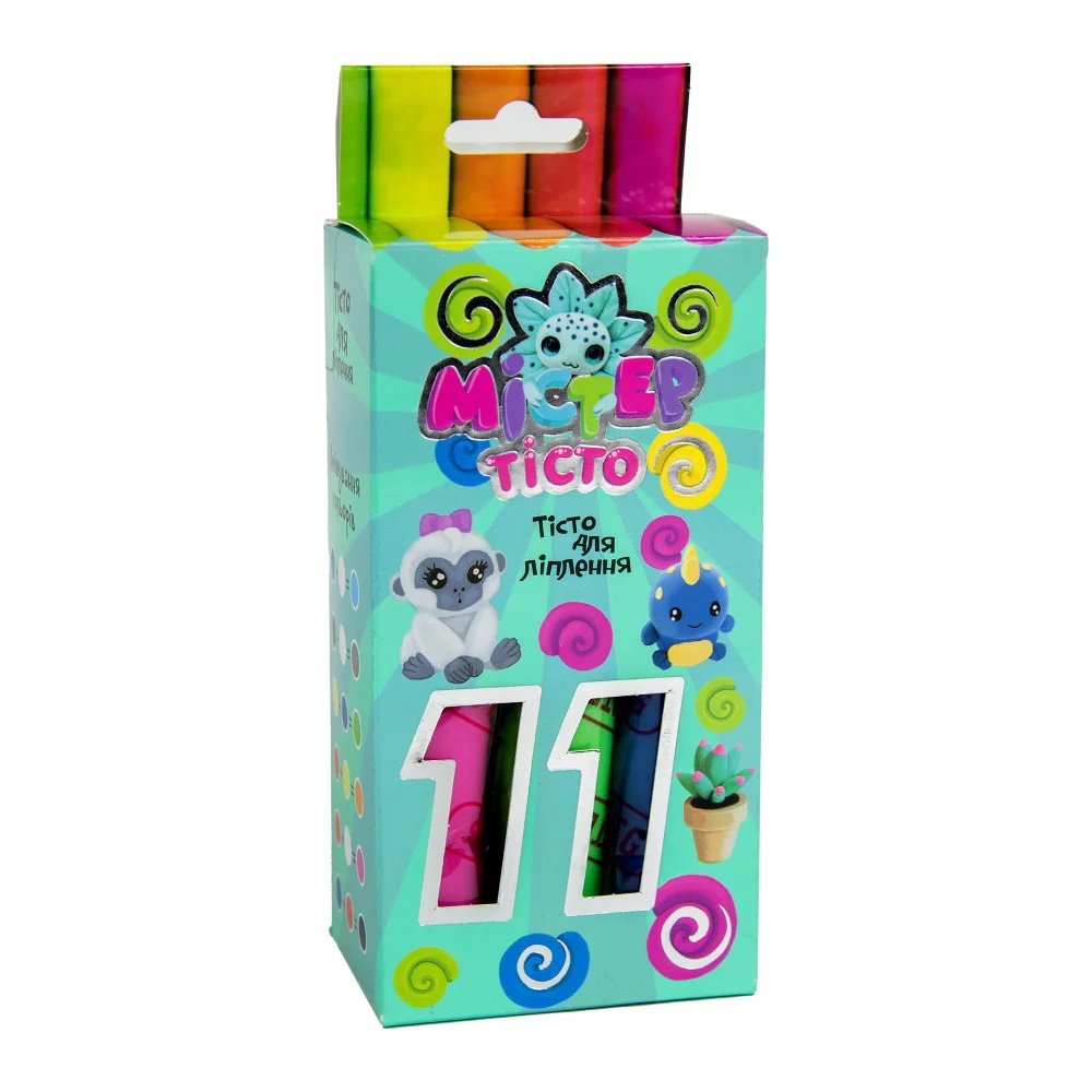 Набор теста для лепки "Мистер тесто", 11 цветов, в кор. 13,3*6,8*4,3см , ТМ Стратег, Украина (36шт)