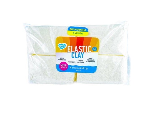 Набор для лепки с воздушным пластилином 400г Elastic Clay white 8 стиков по 50г, 25*16*4см ТМ Lovin (20шт)