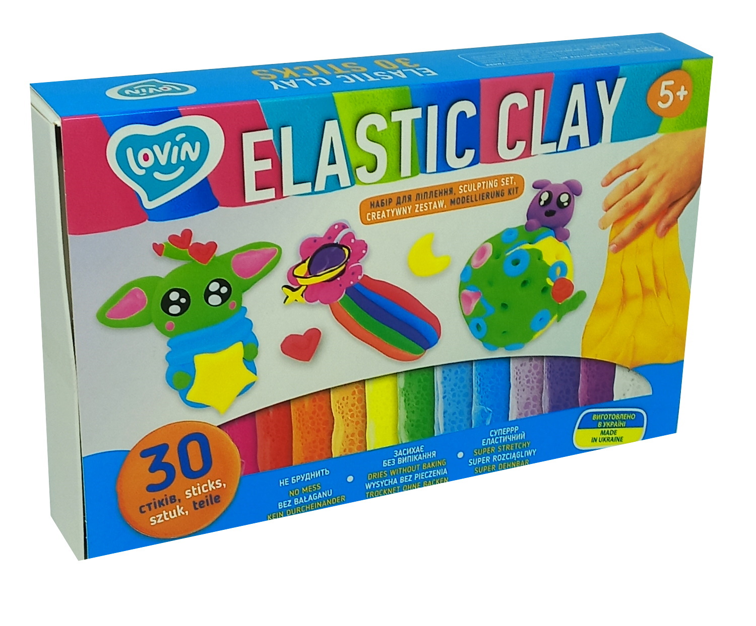 Набор для лепки с воздушным пластилином Elastic Clay 30 sticks, в кор. 24*15*15см, TM Lovin (10шт)