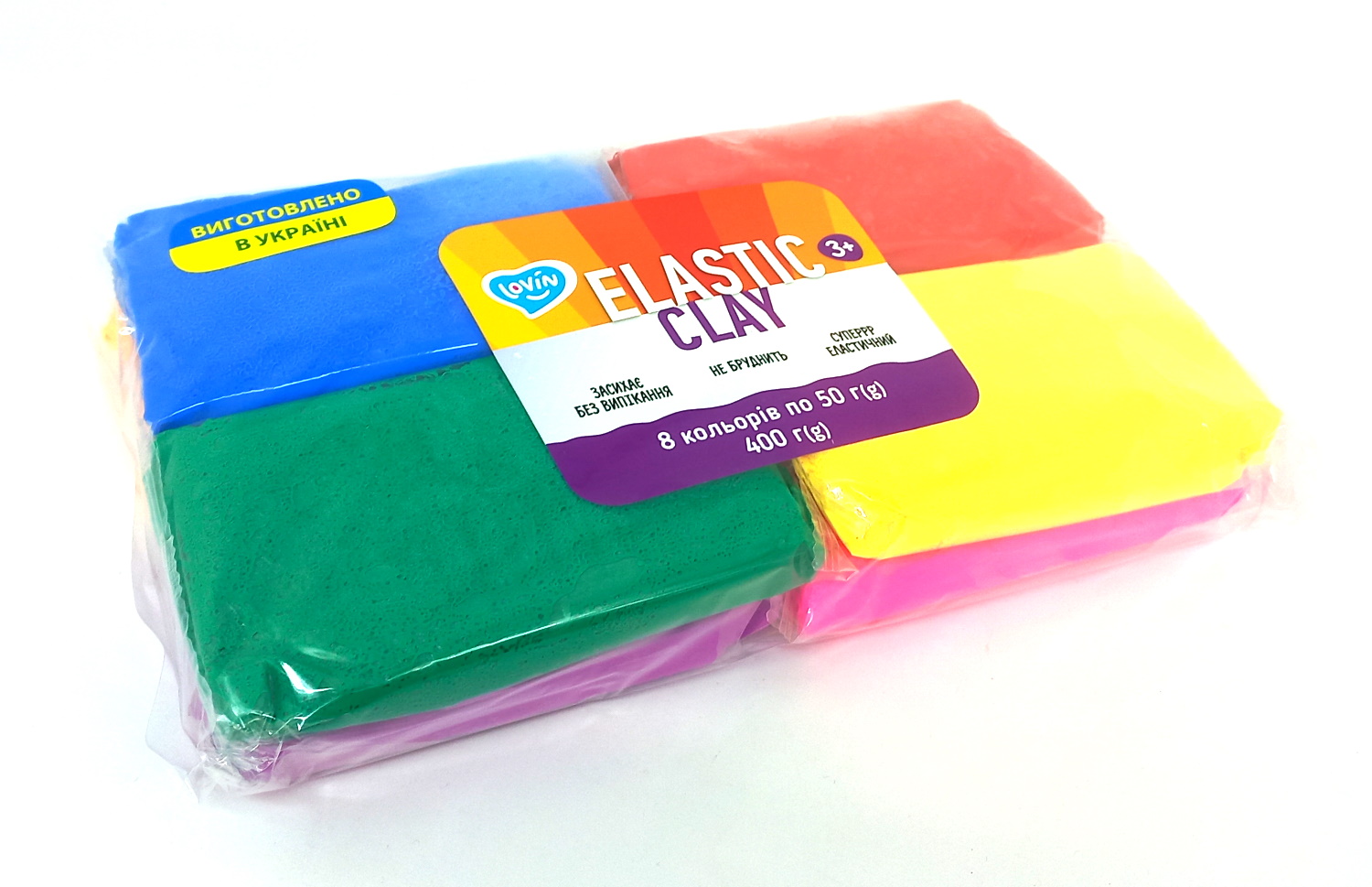 Набор для лепки с воздушным пластилином Elastic Clay 8 цветов, пак. 25*14*5см, ТМ Lovin (20шт)