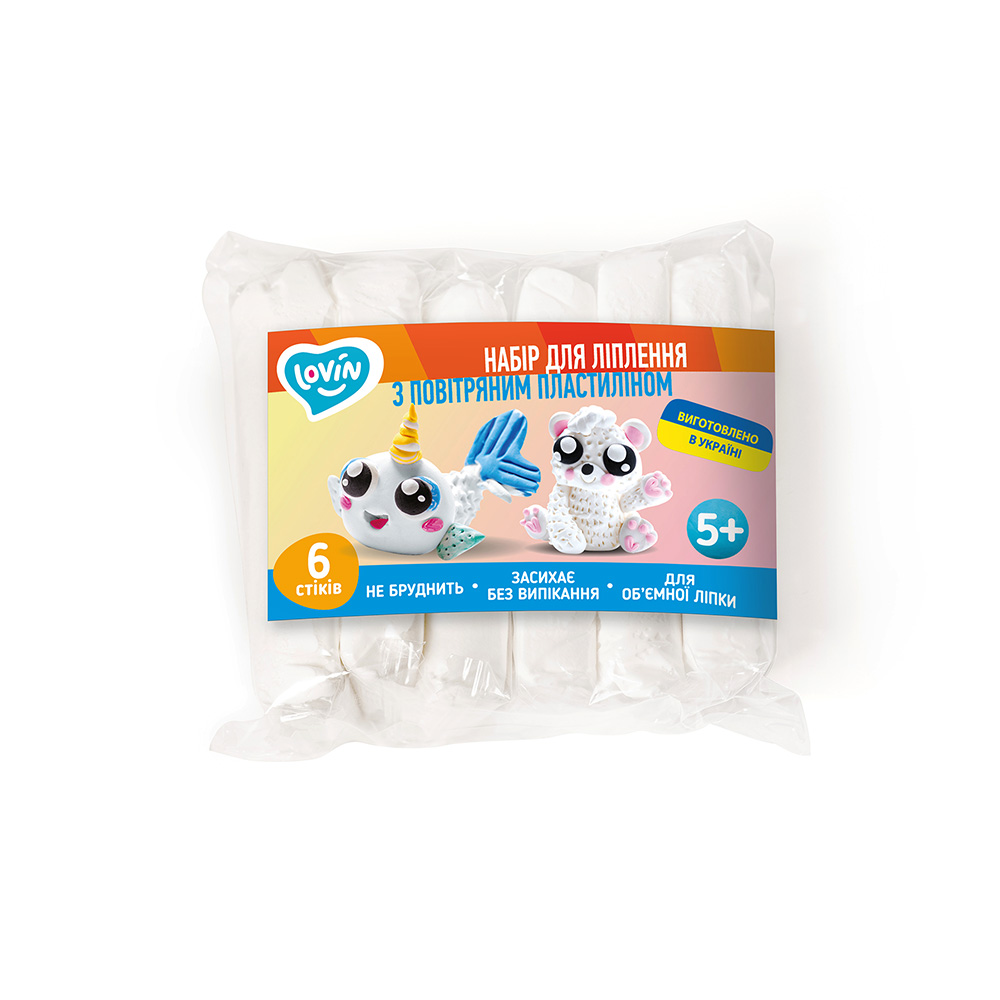 Набор для лепки с воздушным пластилином, 6 стиков, пак. 10*7*3см, ТМ Lovin (45шт)