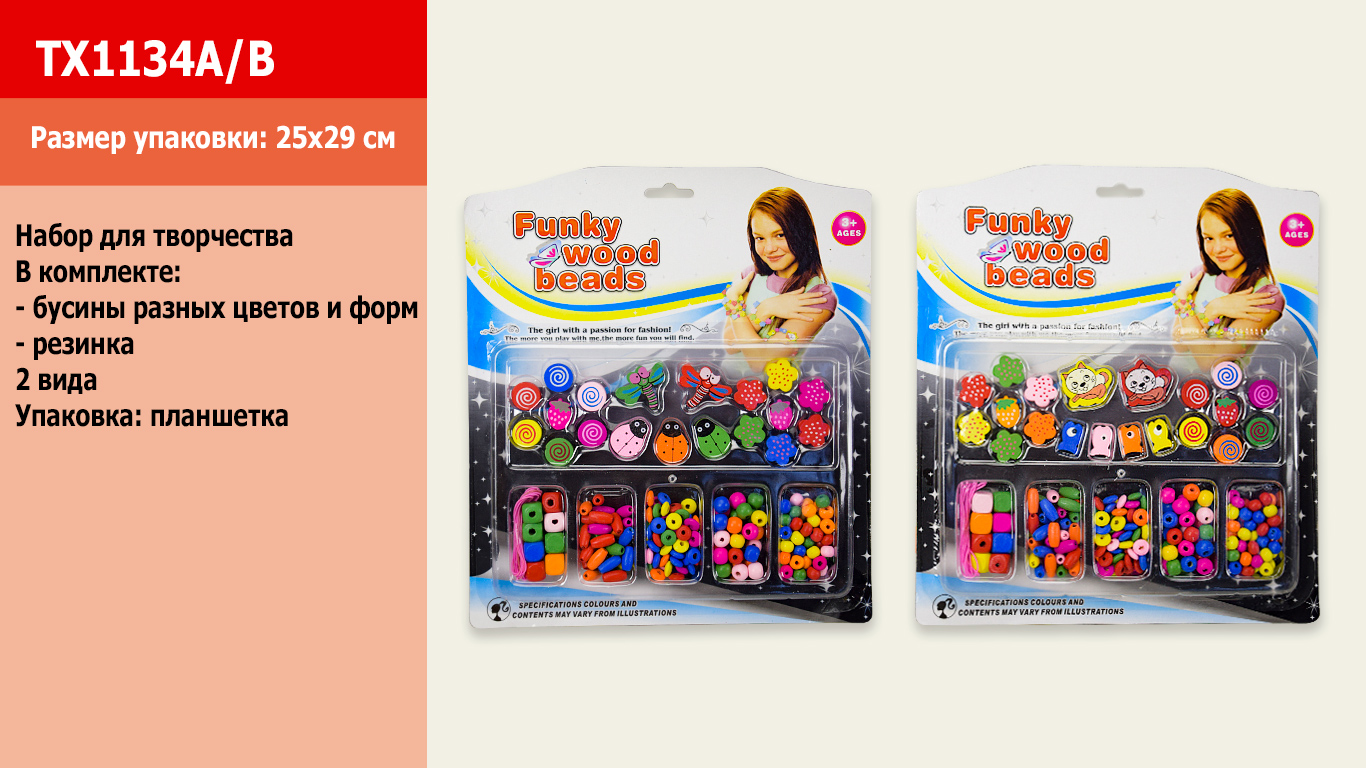 Бисер 2 вида, дерев.бусины, резинка, на планш. 29*25см (168шт/2)