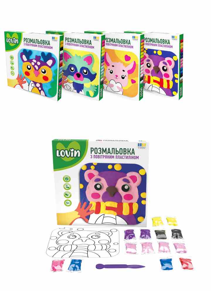 Раскраска с воздушным пластилином ТМ Lovin Набор для лепки "Лісові друзі", в кор. 24*24*2см (8шт)