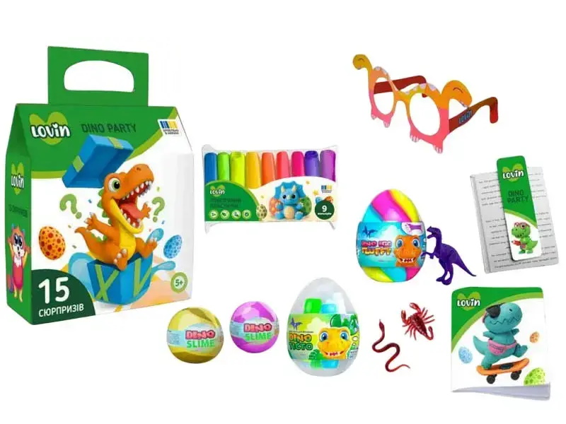 Набор подарочный Dino Party сюрприз, в кор. 23*18*8см, ТМ Lovin (8шт)